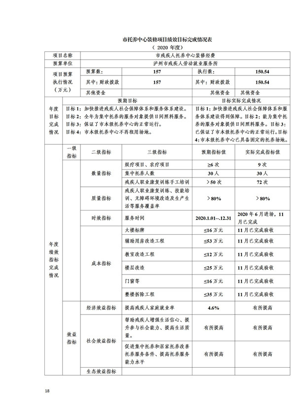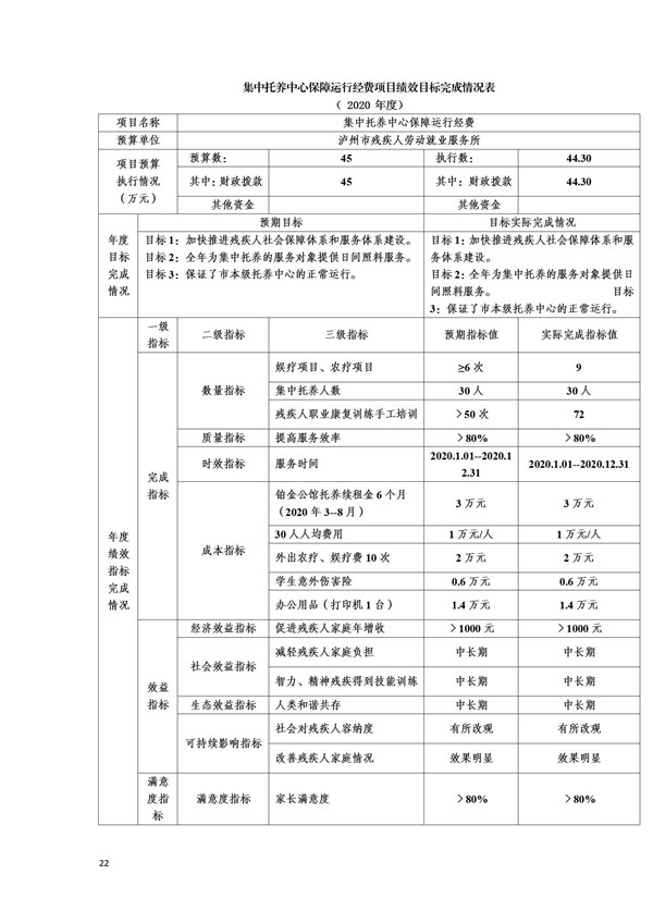 2020年度泸州市残疾人康复服务中心(本级)部门决算