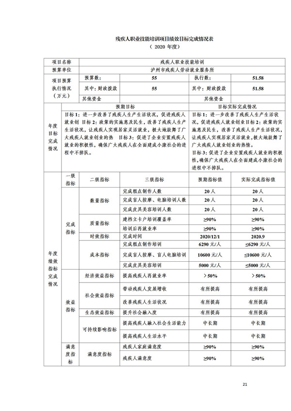2020年度泸州市市级残疾人劳动就业服务所部门决算